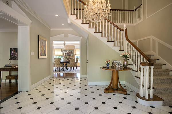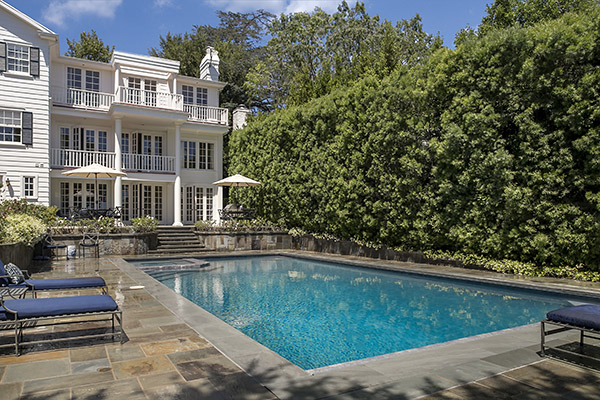 With many recent upgrades and architecture inspired by Paul Williams, an air of casual refinement wafts throughout. Sun-filled at every turn, the quintessential center hall floorplan is punctuated by an elegant foyer and sweeping staircase. A stunning, spacious, bright formal living room opens to a comfortable library, perfect for lazy weekend mornings reading the newspaper. Fireplaces warm each room and through a bank of French doors, enjoy an airy sitting deck taking in verdant views of the estate-like grounds, of the pool and of green treetops blanketing toward the twinkling lights of the city.