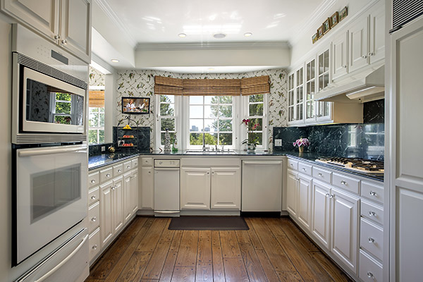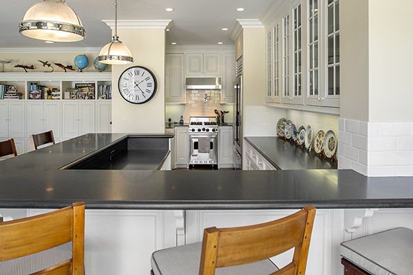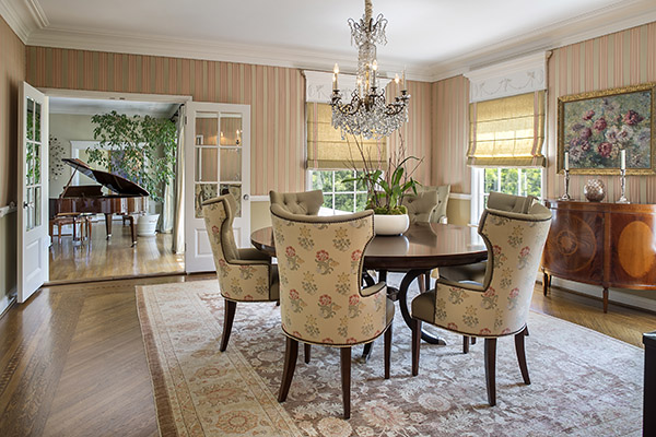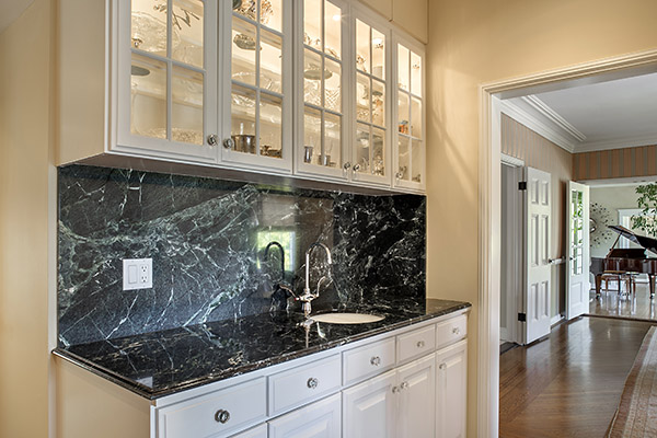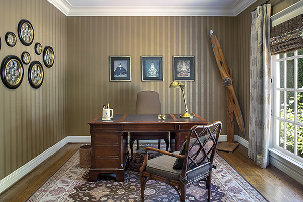 Off the foyer is a handsome study. An expansive formal dining room, amply sized for larger dinner parties, and the sunny kitchen and breakfast area all enjoy the same vistas. There’s also a dream butler’s pantry with walk-in storage and a housekeeper’s or guest’s bedroom and bath.