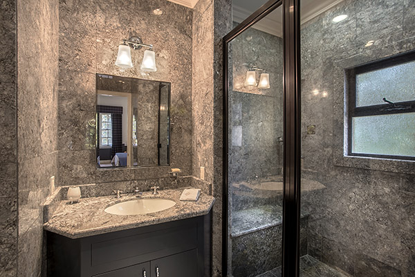 There are four (potentially five) spacious bedrooms upstairs including a fabulous master retreat. The expansive master has a sitting area, wet bar and fireplace. It dramatically opens to a covered balcony featuring the same dramatic views. The sumptuous dual master bath has a spa tub, and dual walk-in closets and vanities. An oversized steam shower joins both sides. Two bedrooms share a redone full bath, Jack & Jill style while the 4th bedroom is en suite. The potential 5th bedroom is currently used as a spacious office.